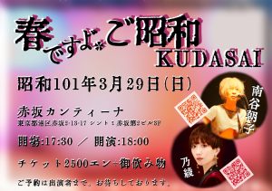 去年の春産声を上げた「桃次郎のうた」がキャストを一人加え、バージョンUPして旅に出ます🌸
