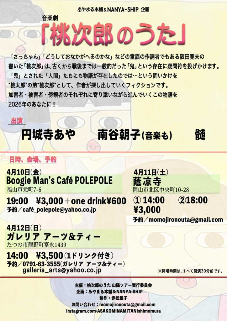 去年の春産声を上げた「桃次郎のうた」がキャストを一人加え、バージョンUPして旅に出ます🌸